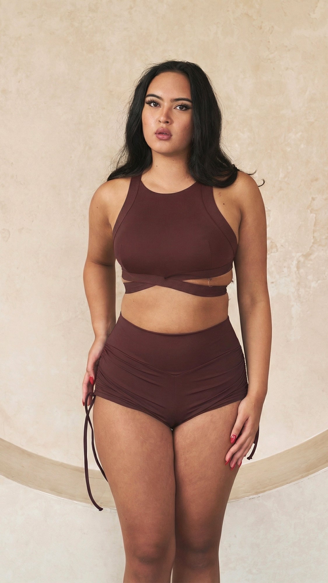 The high waist cut of these does wonders to flatter your figure and cinch that waist. Plus, the scrunch bum gathering, paired with the drawstring sides perks the whole look up and gives the booty a natural lift and shape.