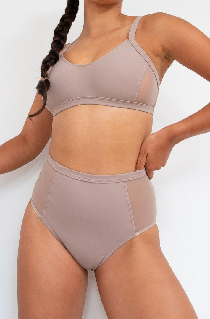 These high waisted bottoms are ultra comfortable and offer coverage everywhere you’d want it. Yet, the sheer mesh panelling allows a little skin to peek through and level up the look! Plus, this gorgeous stretchy fabric doesn't just look and feel amazing - it's eco friendly too! This magical blend of polyester and spandex comes from 75% recycled materials.