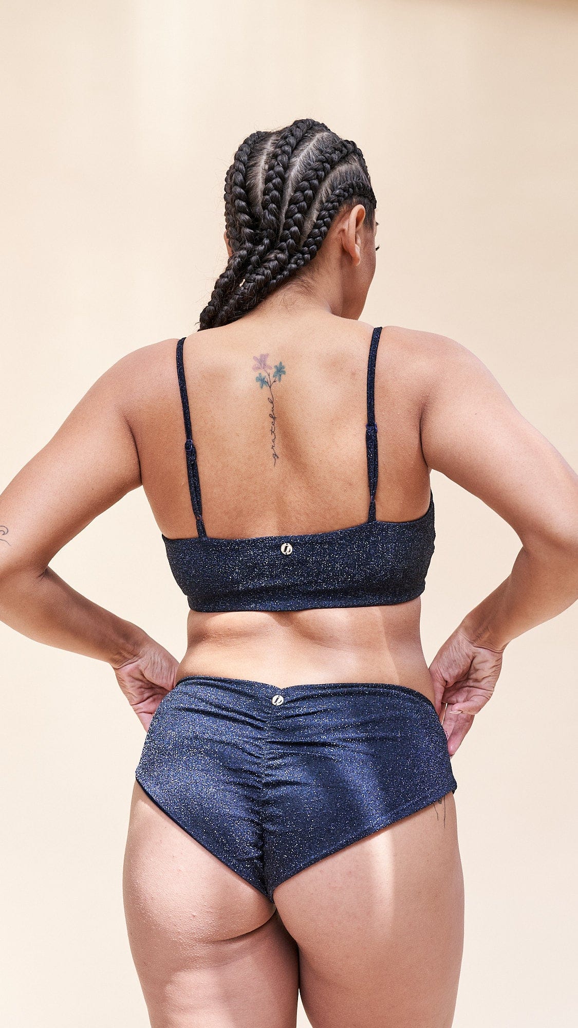 Please note that our paris low waisted bottoms are made from a firm fabric that results in a "just right" fit in the low waisted version. While these sparkly bottoms measure true to size, they fit the body in a hugging snug fit with limited stretch. Depending on personal preference, this might mean that you'd like to size up!